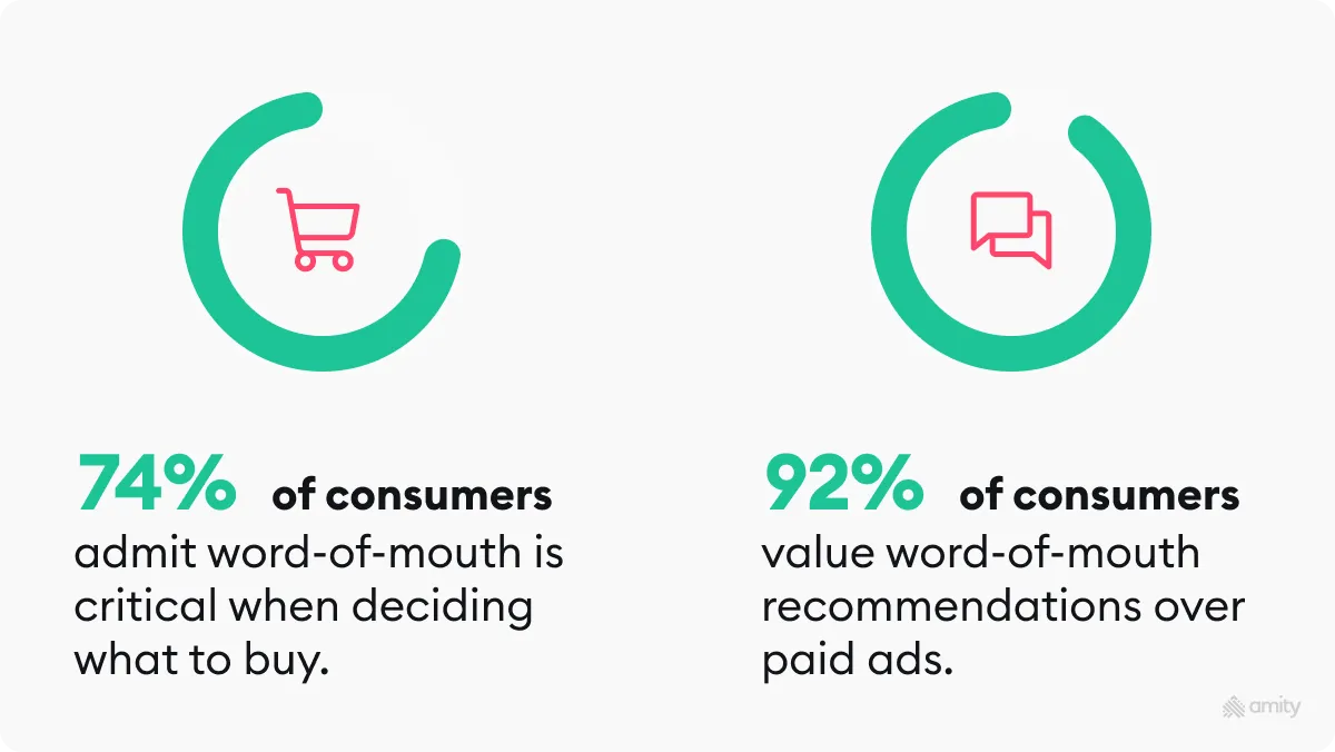 - A significant 74% of consumers admit that word-of-mouth plays a crucial role when they're deciding what to buy.