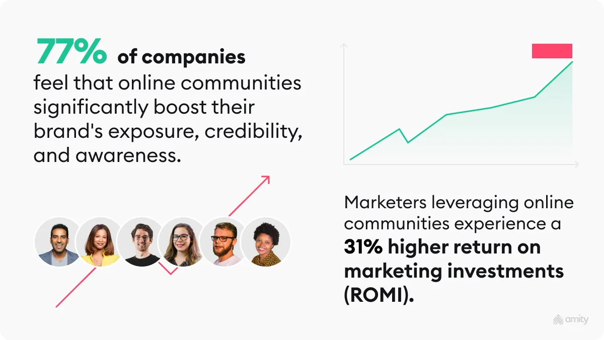 - Inversoft's research indicates a striking 77% of companies feel that online communities significantly boost their brand's exposure, credibility, and awareness.